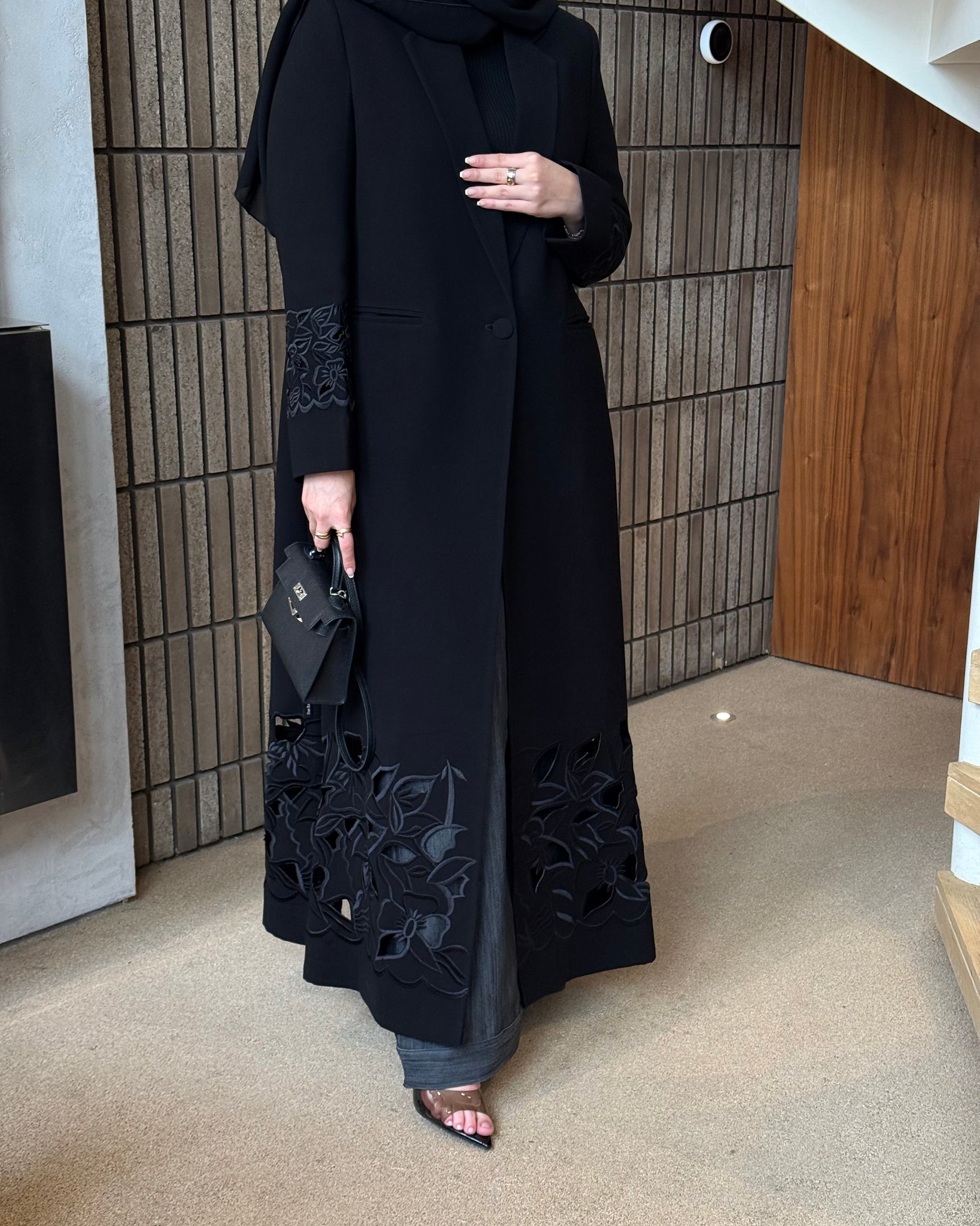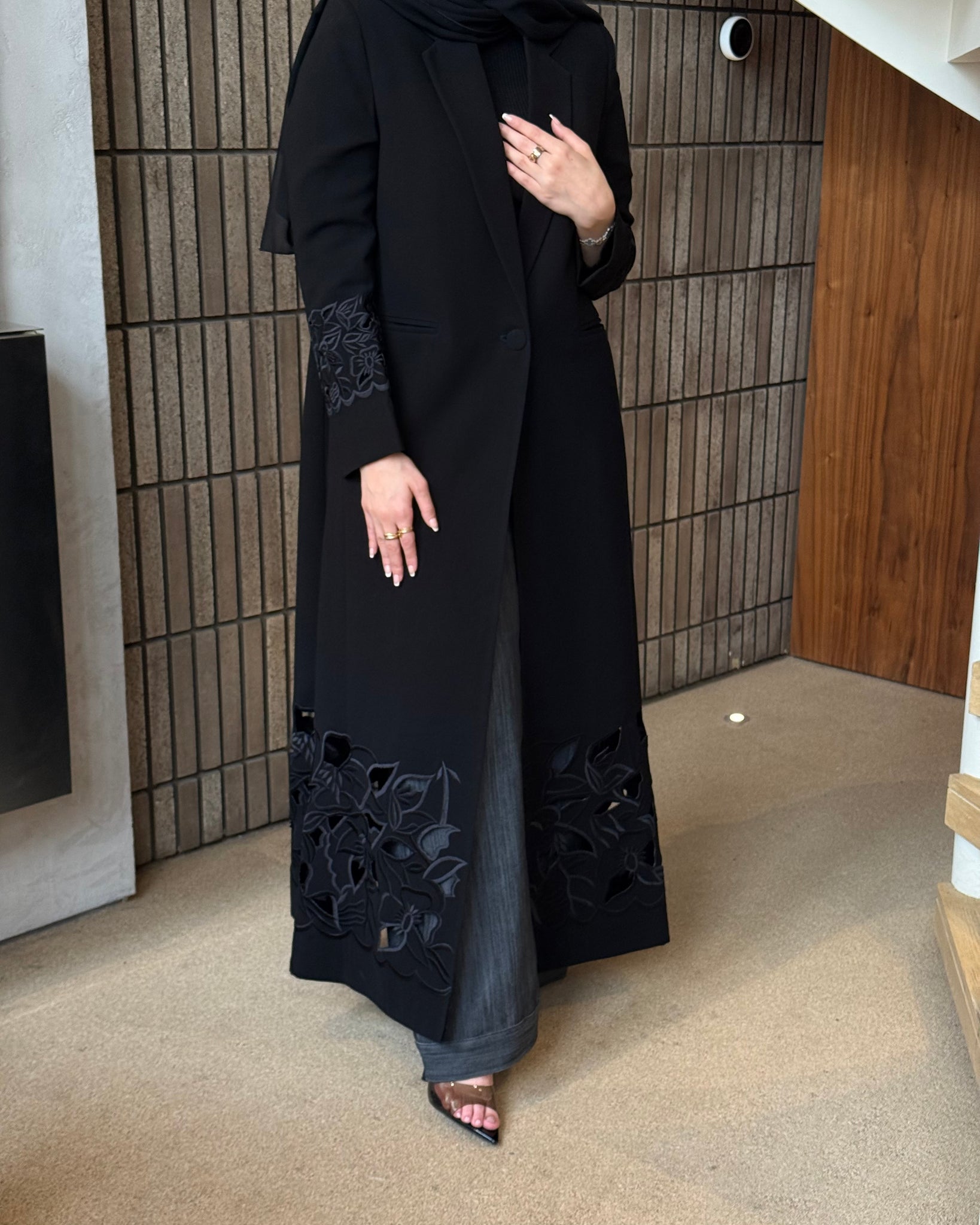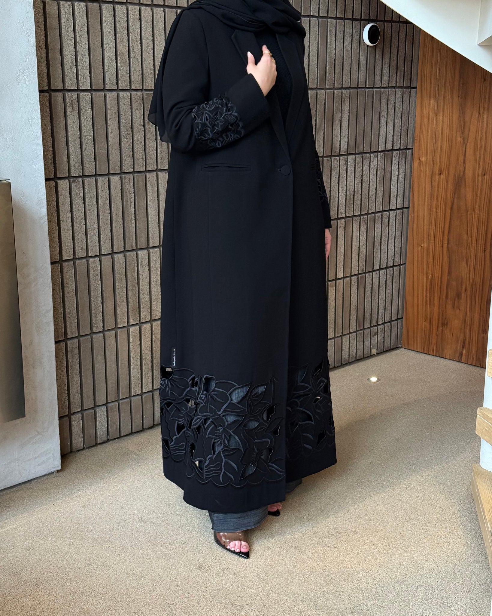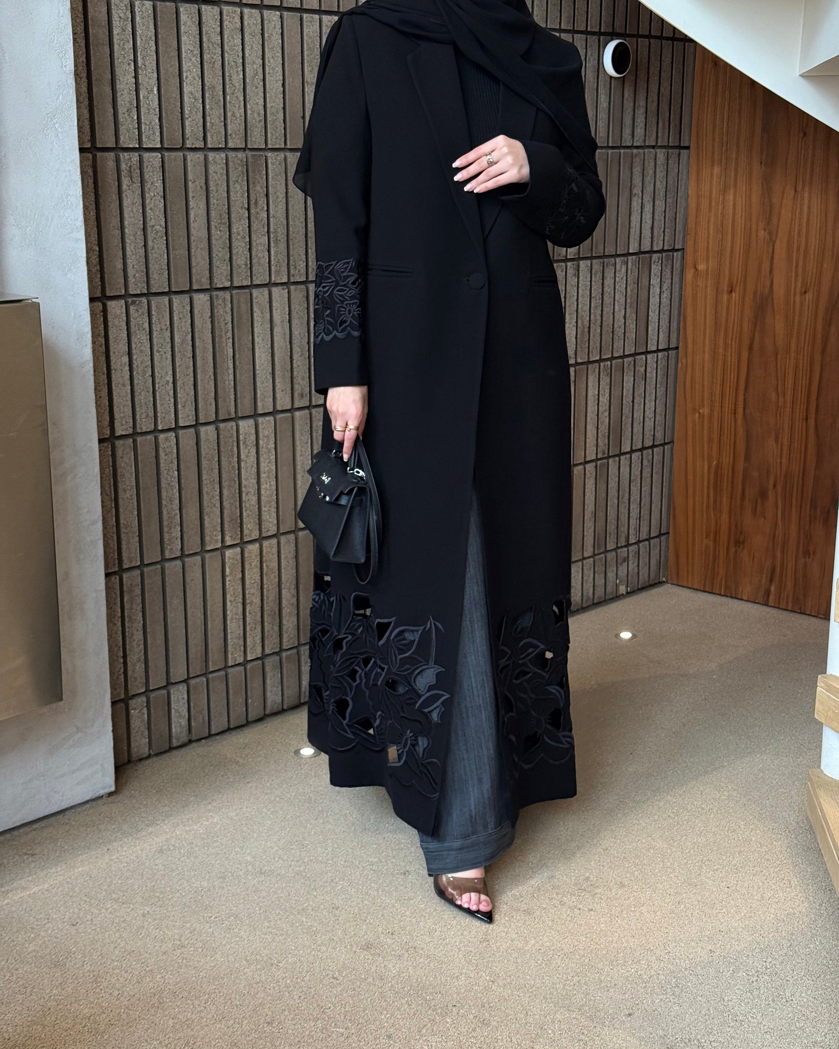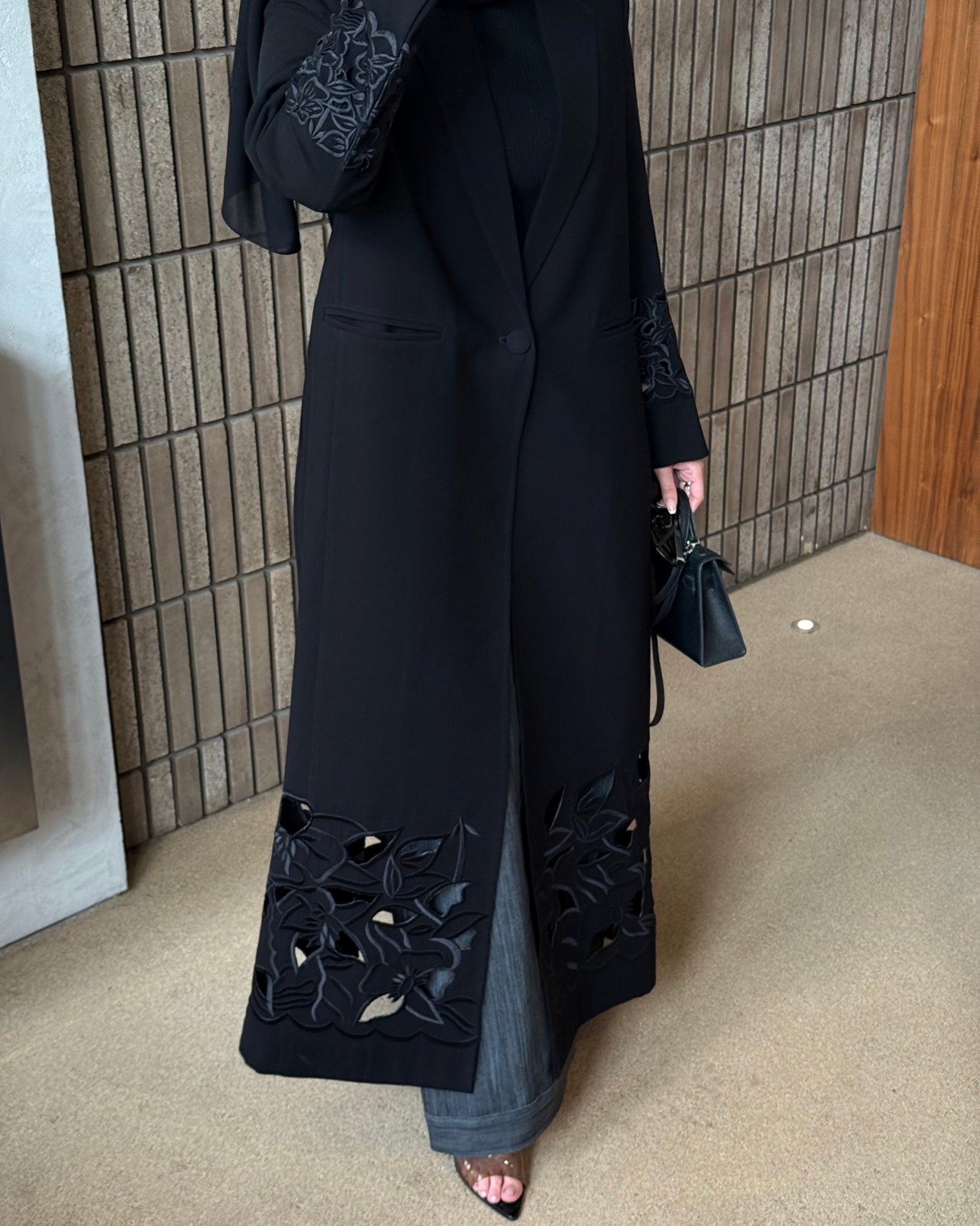بليزر مبطن .. قطعه كلاسيك مطرّزه مع تخريم على الكم واسفل البليزر